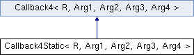 Inheritance diagram for Callback4Static< R, Arg1, Arg2, Arg3, Arg4 >: