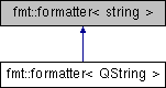 Inheritance diagram for fmt::formatter< QString >:
