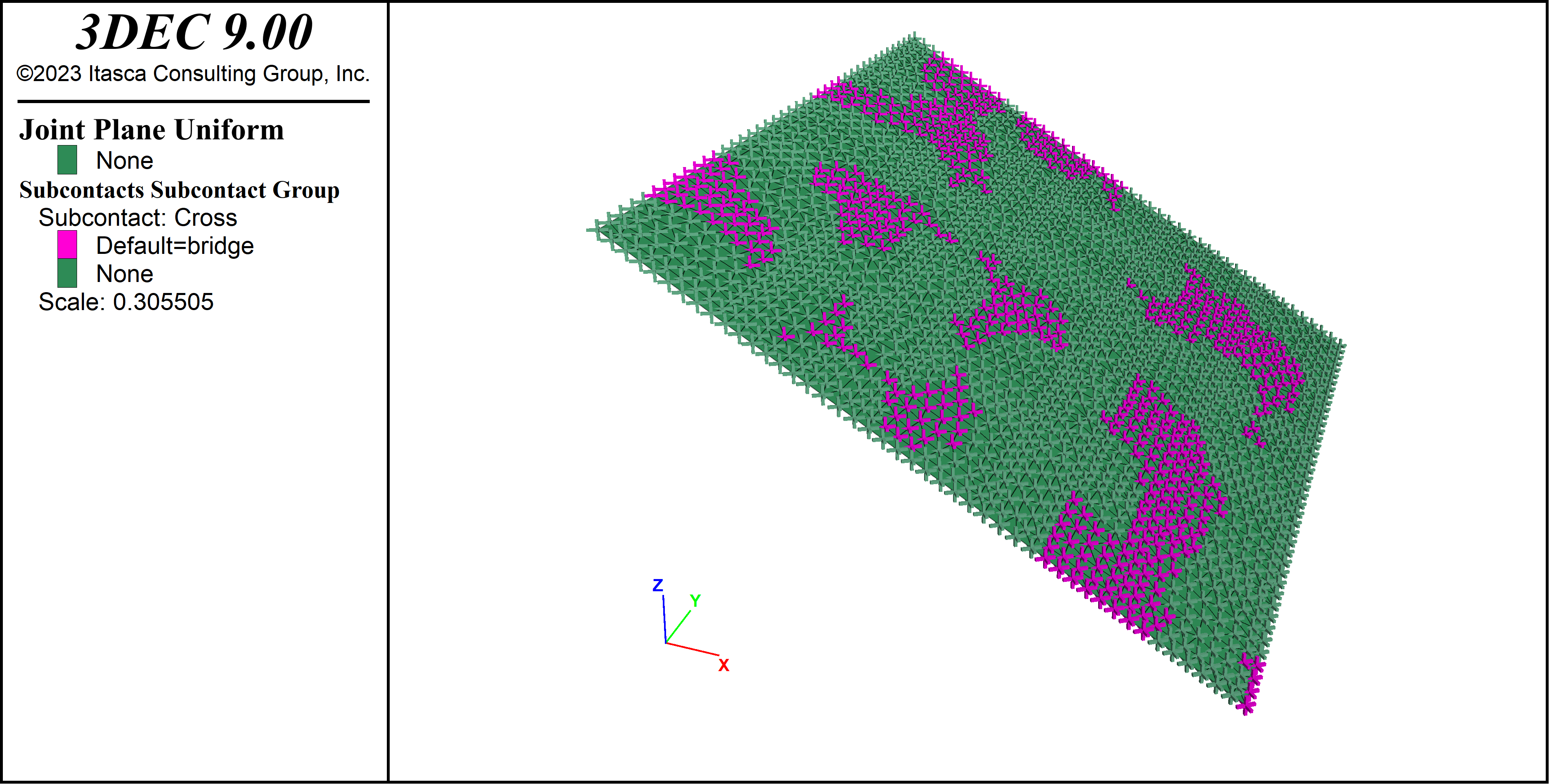 model random) will result in a different distribution of rock bridges and a slightly different true persistence.It is up to the user to assign different properties or constitutive models to the rock bridges to simulate non-persistent joints.