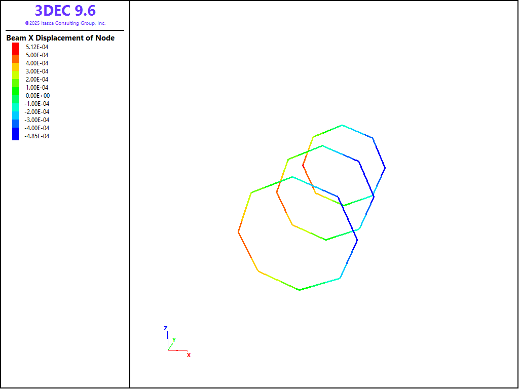 Figure 1 shows the placement of the beam elements inside the tunnel, and Figure 2 illustrates the axial forces in the beams.