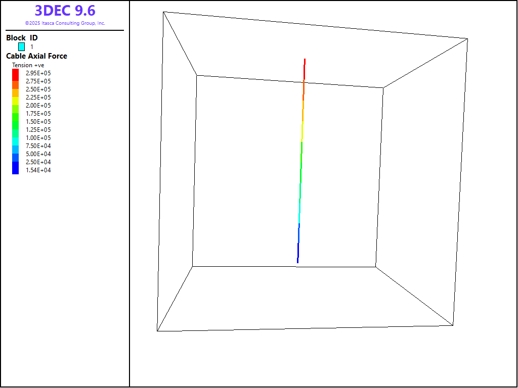 These values are representative of a weak grout (e.g., see Hyett et al. 1992). Note that the cable length and grout strength are selected for rapid execution of the model. The purpose is to illustrate the performance of the cable elements.