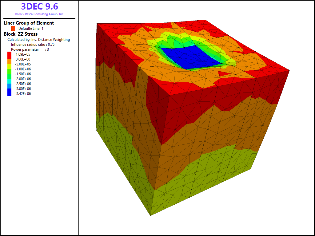 The project file for this example may be viewed/run in 3DEC.[1] The data files used are shown at the end of this example.