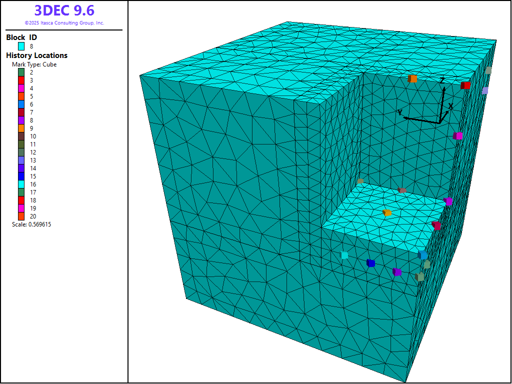 The project file for this example may be viewed/run in 3DEC.[1] The data files used are shown at the end of this example.