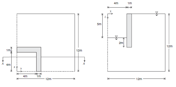 An excavation is planned in a saturated soil layer resting on an impervious base. The soil layer has a thickness of 12 m. The level of the phreatic surface is constant and corresponds to the soil top-surface. The excavation will have a square cross-section of dimensions 8 m × 8 m, and a depth of 5 m. In preparation for this work, the excavation site has been surrounded by vertical impervious walls 1 m thick which extend 2 m below the excavation bottom. After excavation, pumps are installed to lower the water level to the excavation bottom. The problem is to assess the total upheave at the excavation bottom resulting from excavation and drainage.