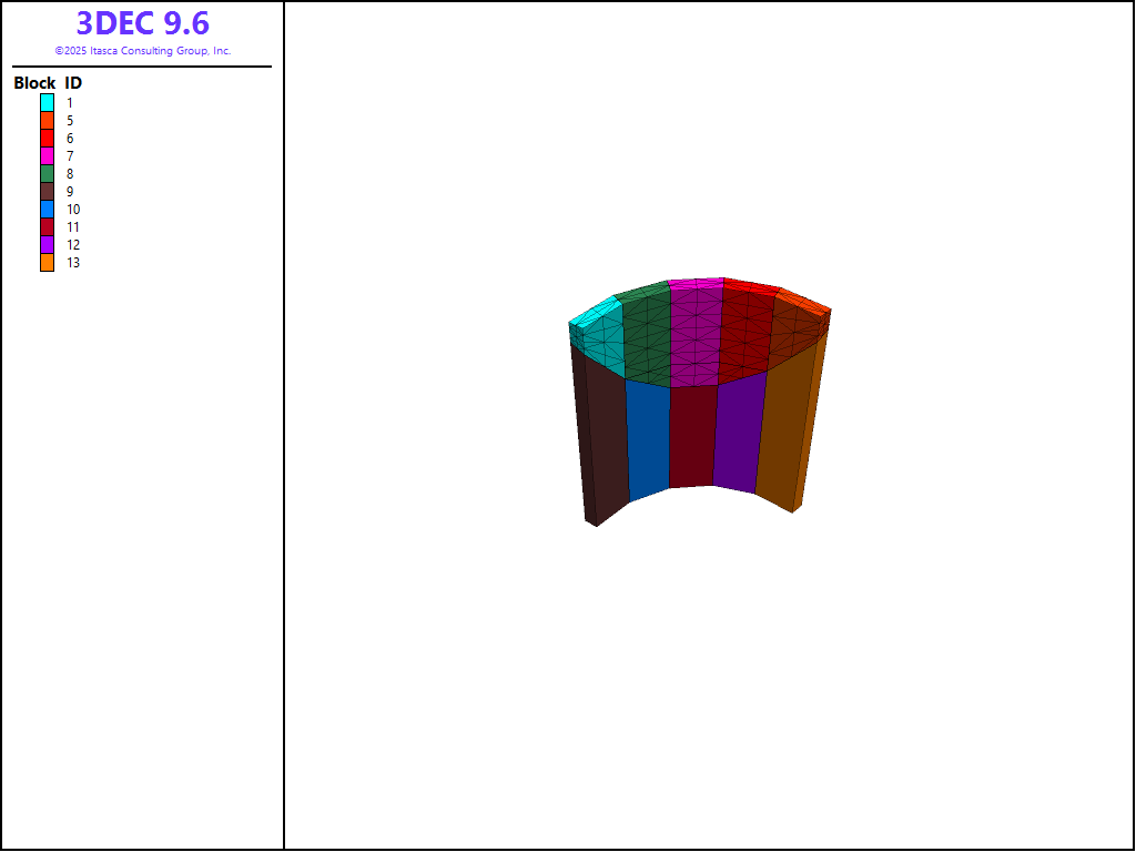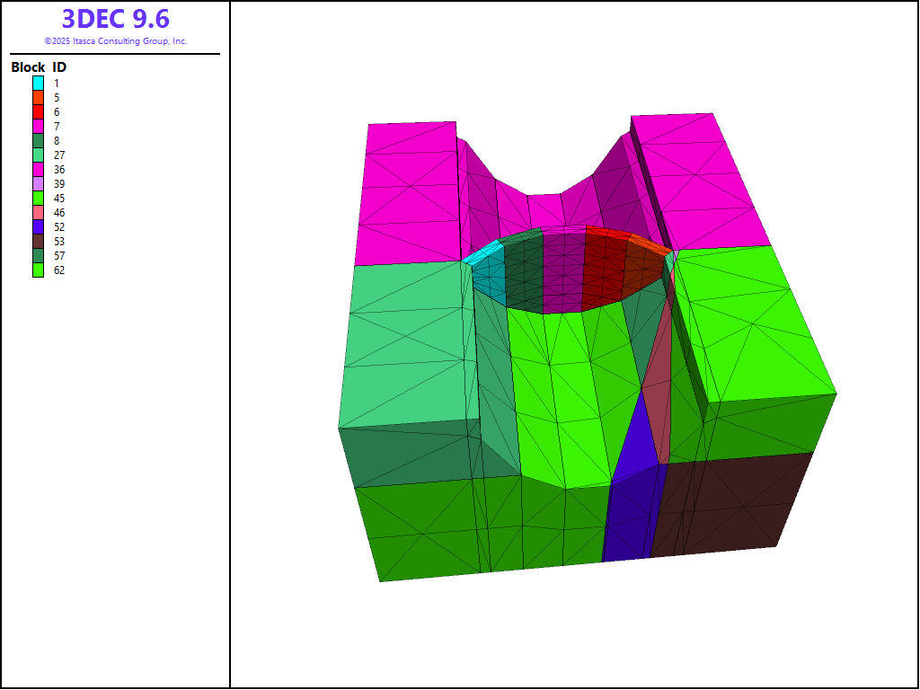 The project file for this example may be viewed/run in 3DEC.[1] The data files used are shown at the end of this example.