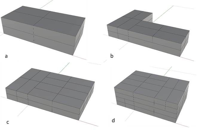 Copy and translate the 8-brick modules to create another layer as shown in Figure 1 (d). You will now have a 48-brick repeatable module.