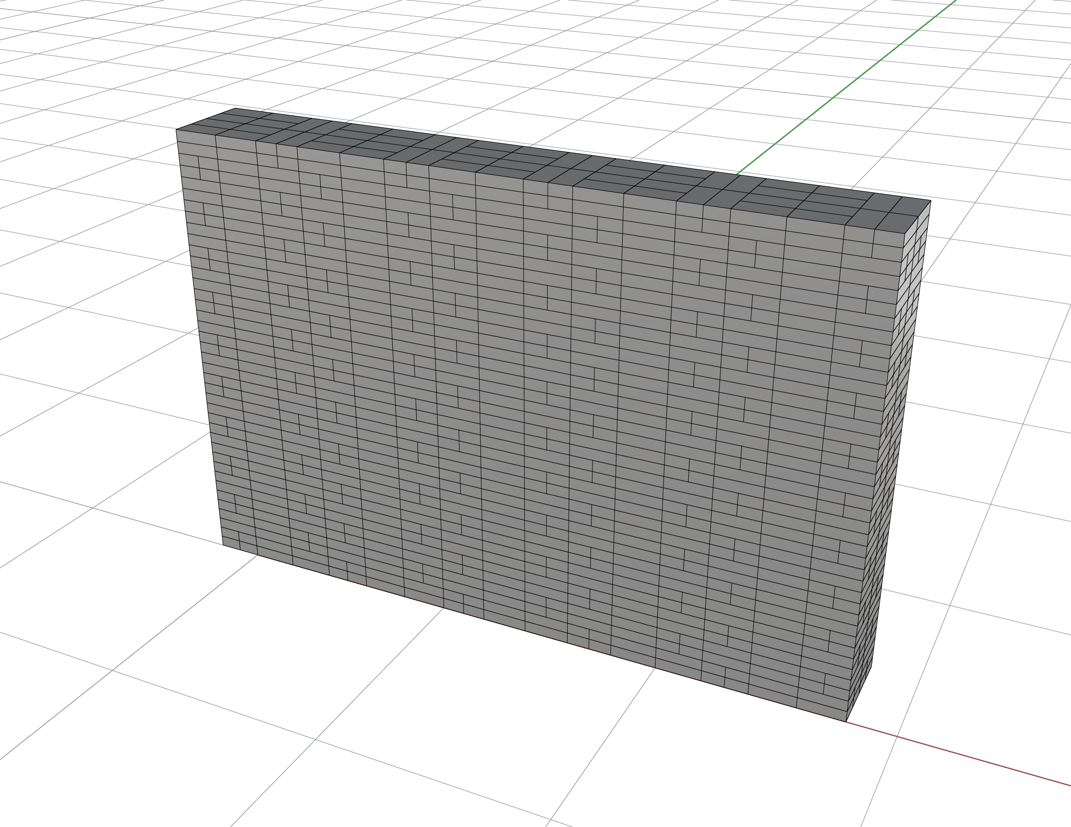 This example describes how to create a model of a Flemish bond brick wall in Rhino (Robert McNeel and Associates, 2020). The Rhino model is saved in VRML format and is then imported into 3DEC. The wall is then subjected to dynamic loading.