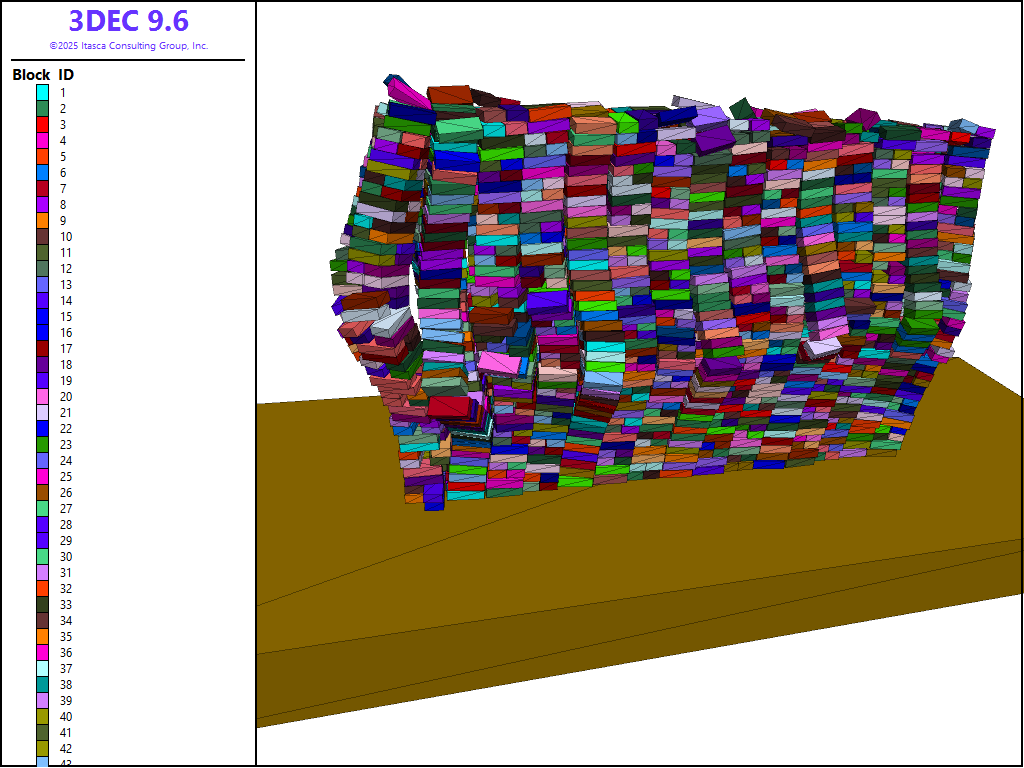 Figure 4: 3DEC model after 0.5 s of earthquake loading.