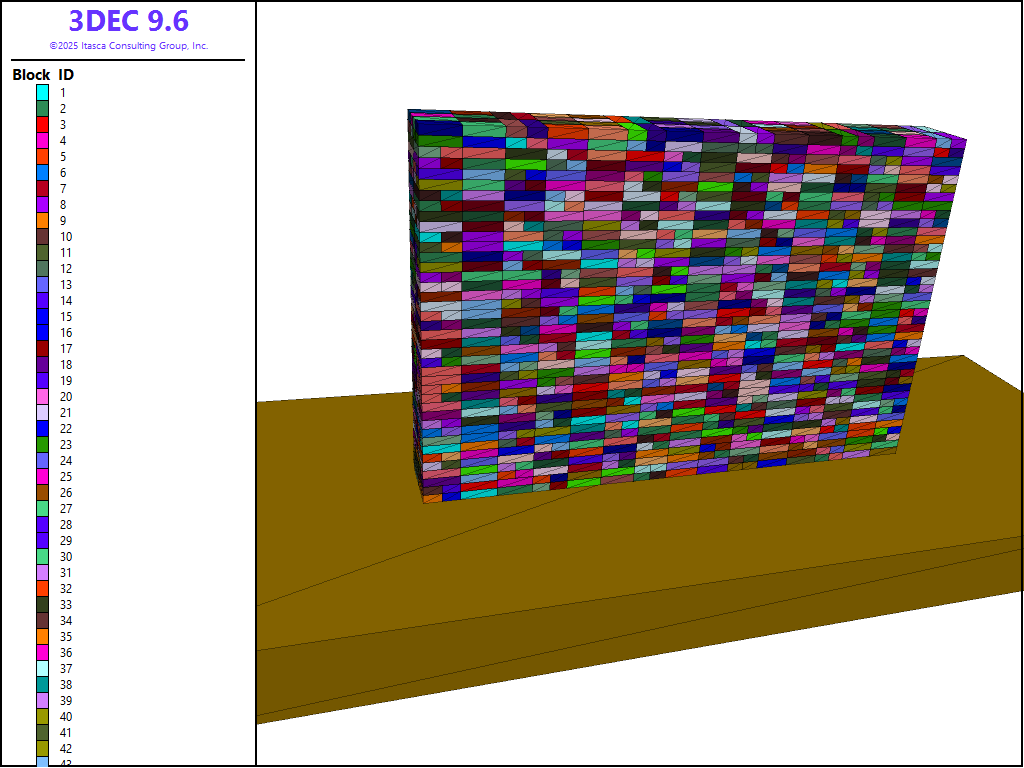 model newcommand and configure for dynamic analysis. Use ablock generate from-vrmlcommand to import blocks into 3DEC from the file “wall.wrl” . The complete data file for this example is shown below.Add a