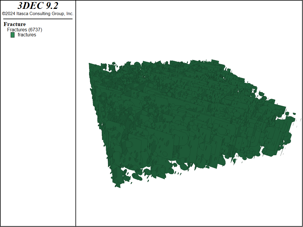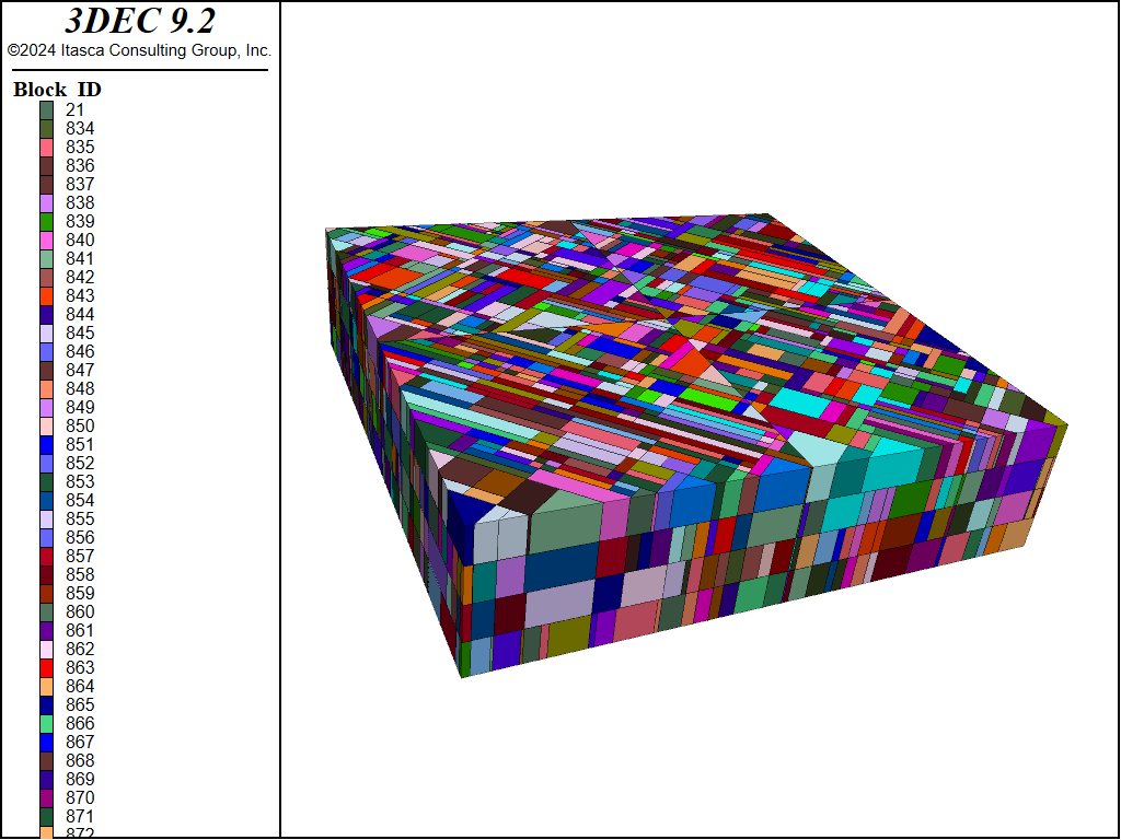 Now the DFN (“fractures”) can be used to cut joints in the 3DEC model with the block cut dfn command. The resulting blocks are shown in Figure 2.