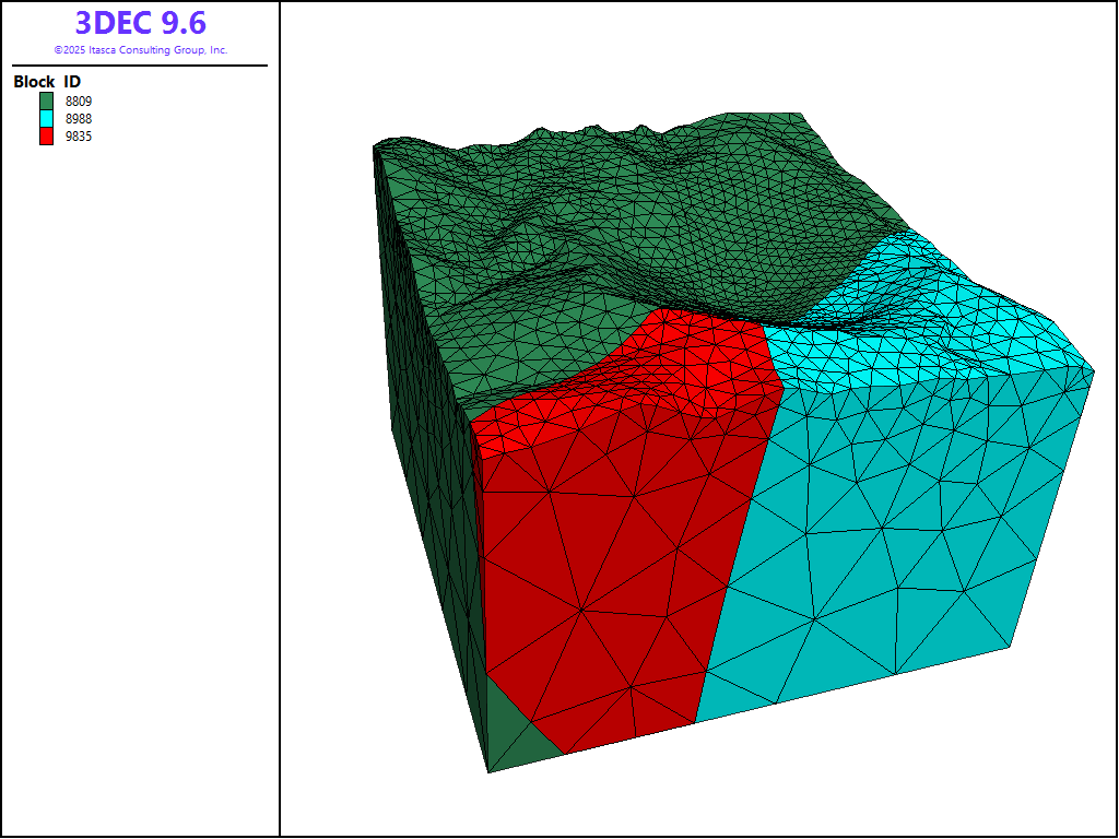 The project file for this example may be viewed/run in 3DEC.[1] The data files used are shown at the end of this example.