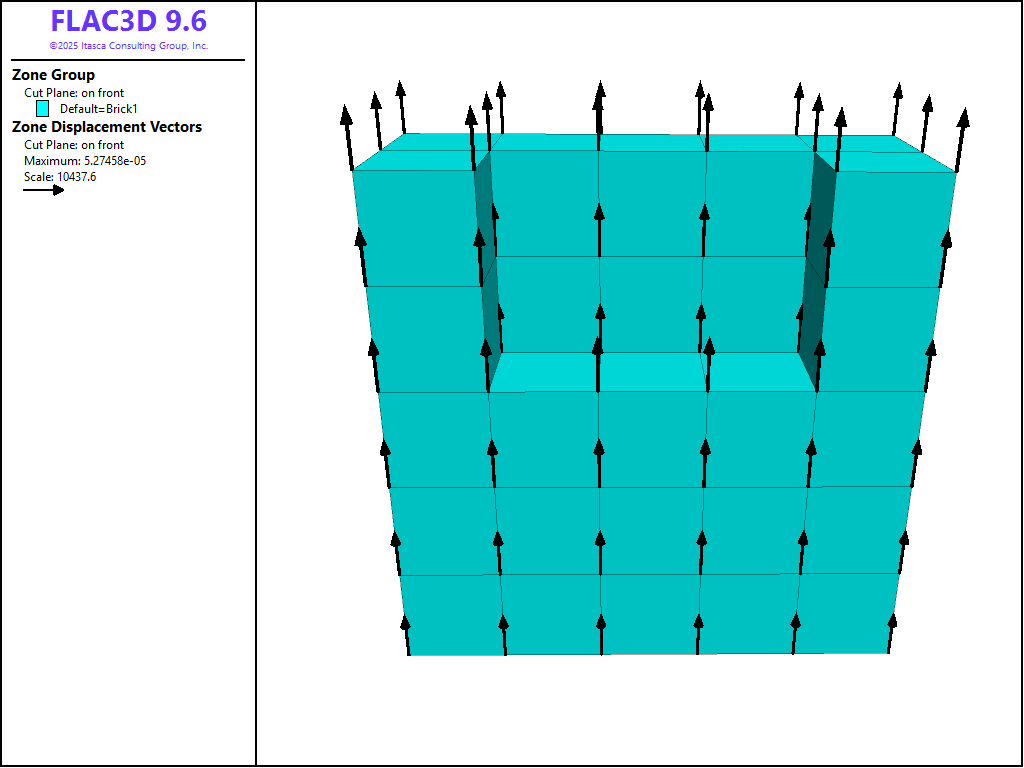It is also possible to apply a gradient to a single stress component. In this case, the input is a vector giving the variation of that component in the \(x\), \(y\) and \(z\) directions. The following example would produce the same result as the example above: