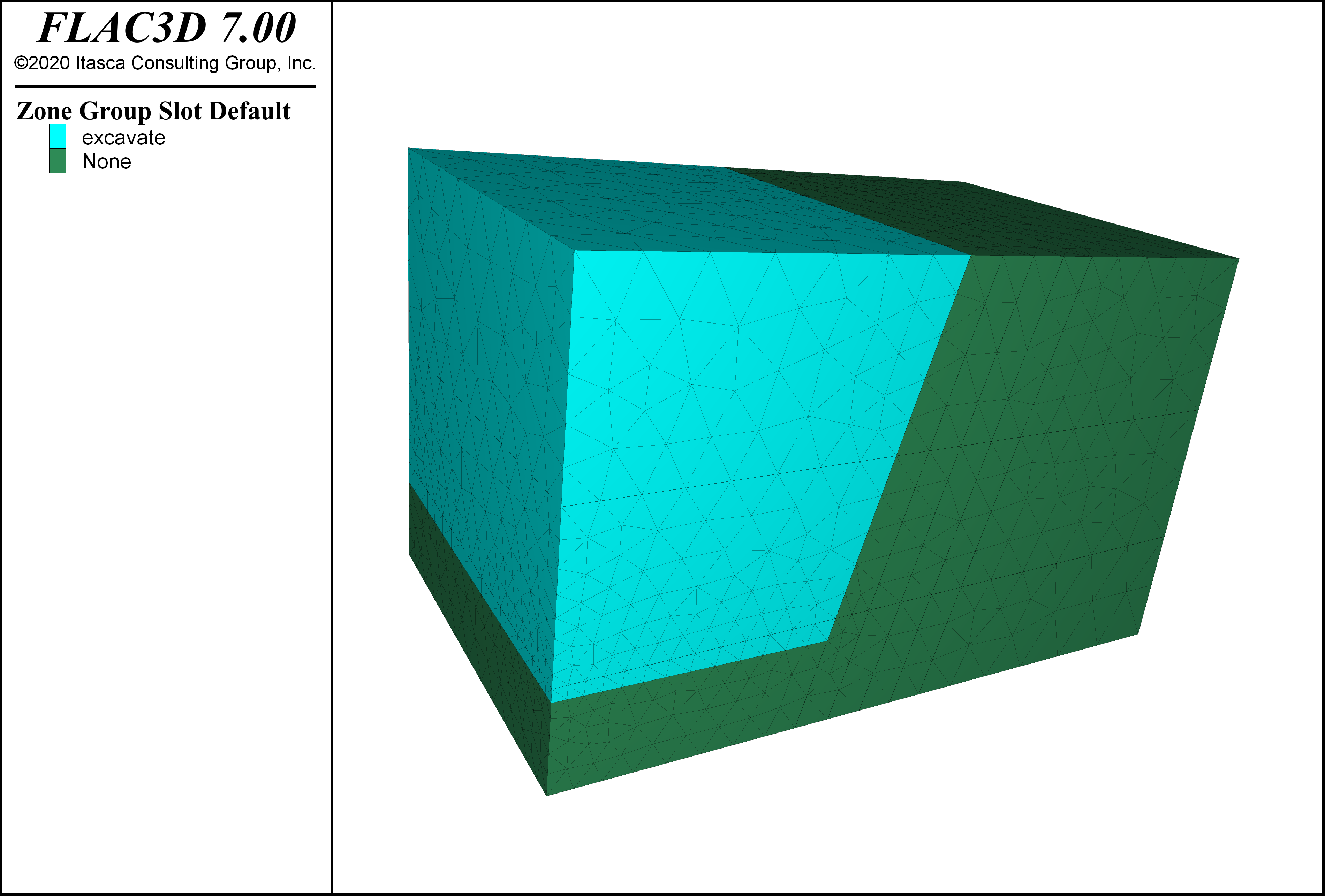An example is shown below. This is a variation on the Quick Start Tutorial. Keep in mind that blocks in 3DEC must be zoned if they will be used to create a FLAC3D model.