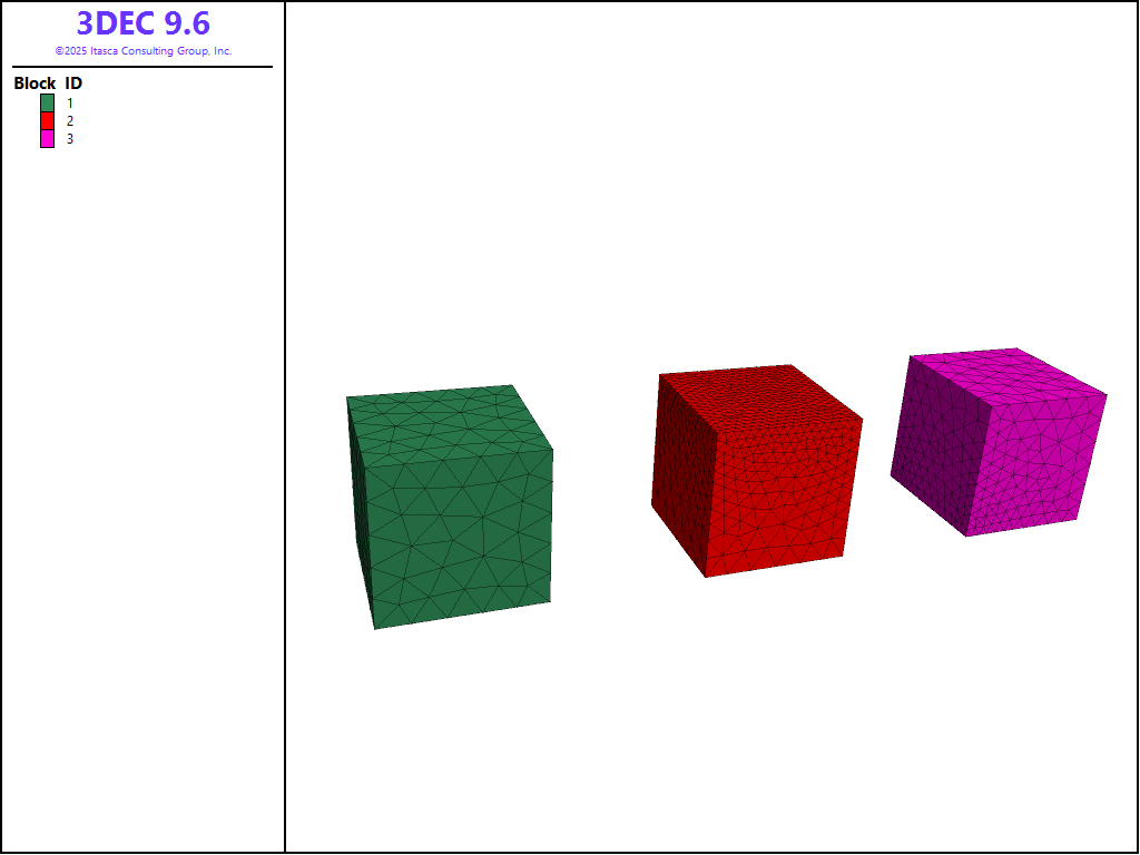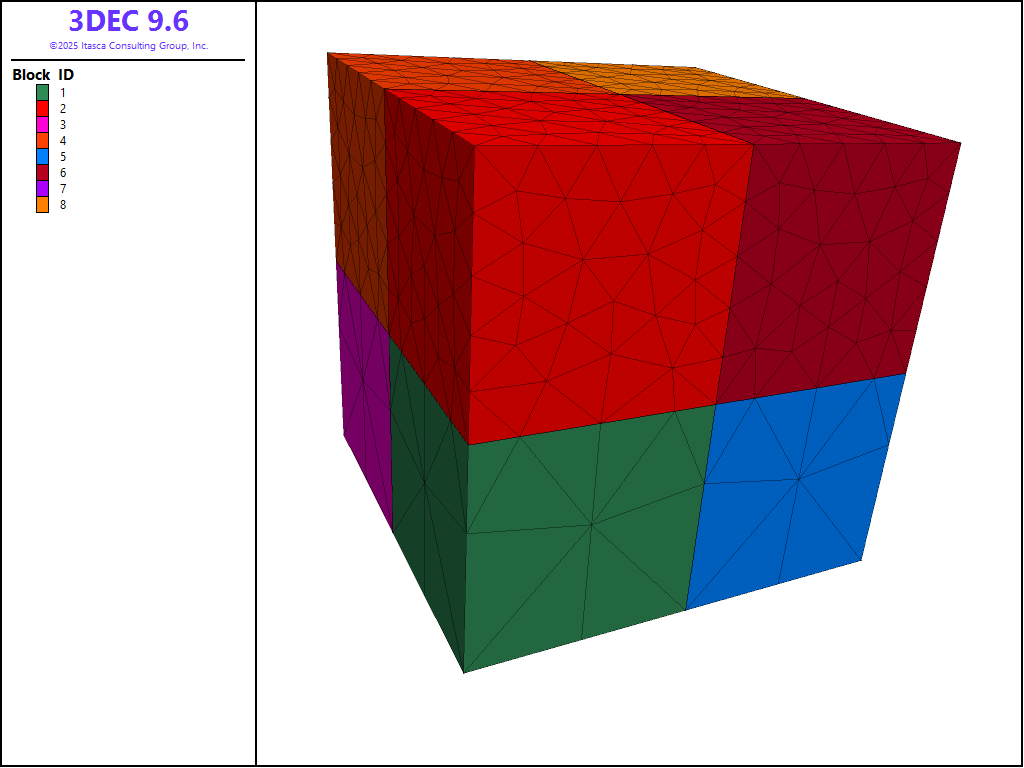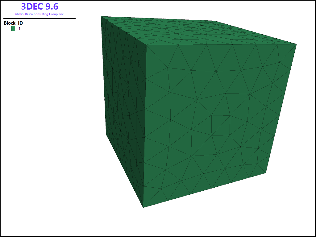 Zones in 3DEC are usually generated with commands. The basic commands are usually capable of meshing any block assembly with tetrahedra. The meshing is quite robust, but there are some drawbacks including lack of controls and slow generation in some cases. A new experimental method was added in Version 7 to address some of these issues. Both methods are descibed below.