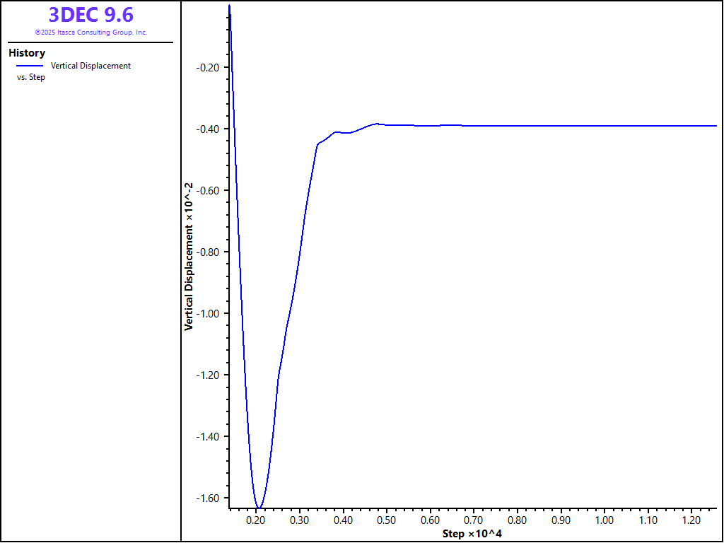 Figure 3: Vertical Displacement history in the tunnel roof.