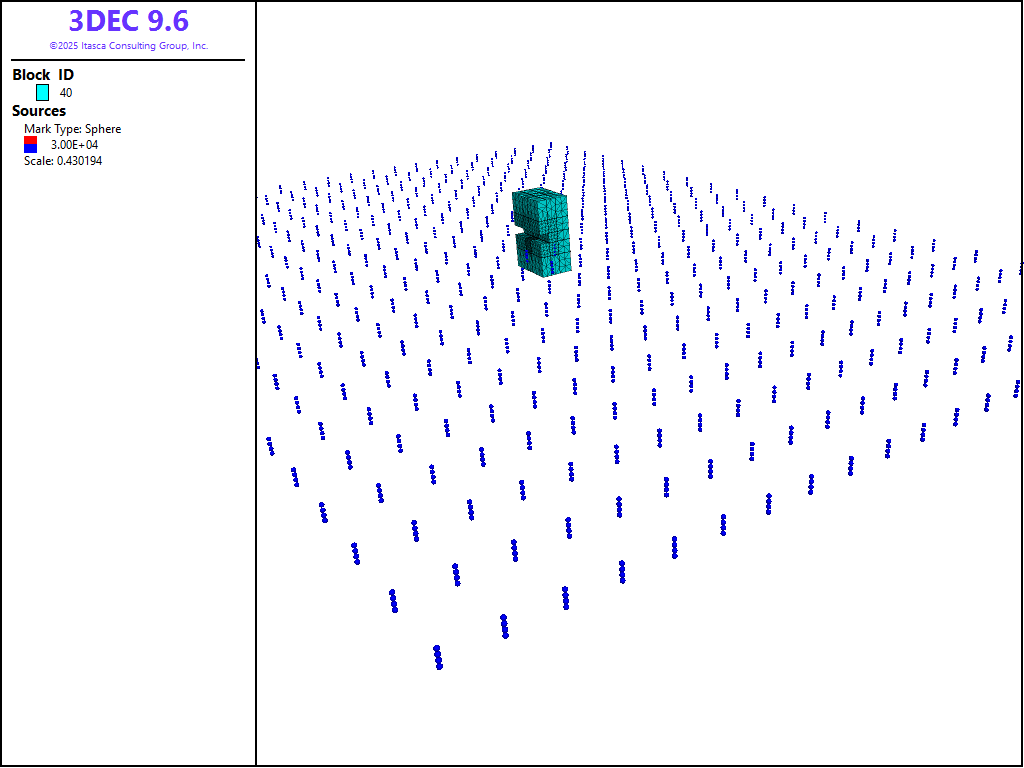 3DEC is a three-dimensional distinct element code for the analysis of problems in solid mechanics. A simple thermomechanical option has been added to the code. The main purpose of this option is to model heat sources embedded in the material. Point heat sources are placed either individually, or in lines and grids, to represent point, line or plane sources. The stress changes caused by temperature changes (due to thermal expansion) are equilibrated by using the standard mechanical 3DEC code to take a “snapshot” of the transient stresses at different times.