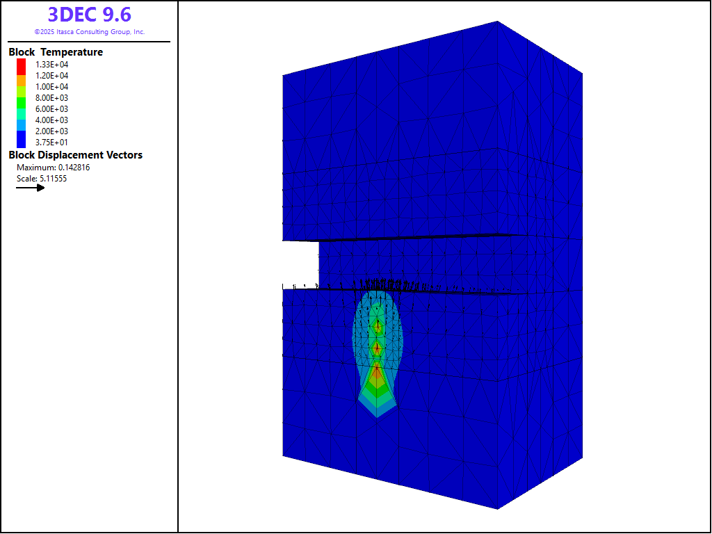 In spite of the limitations of this method of solving thermal-mechanical problems, the thermal coupling in 3DEC is still a powerful aid when solving problems with heat sources, such as nuclear waste isolation problems.
