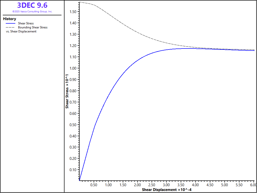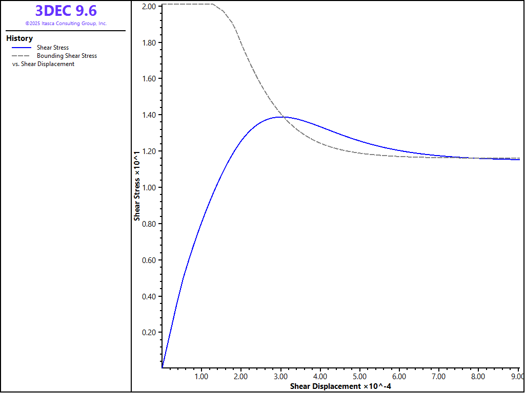 The curve of shear stress/shear displacement is always tending toward a “target” shear strength for the joint (i.e., the instantaneous gradient of the curve depends directly on the difference between strength and stress).