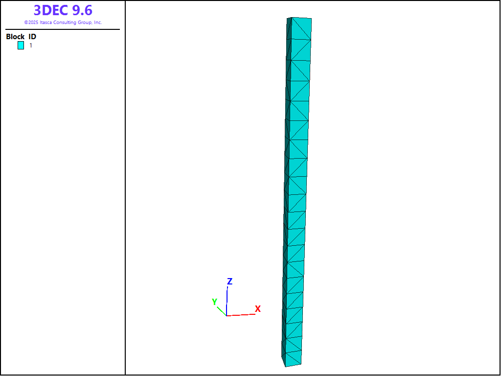 Figure 11: 3DEC grid for one-dimensional consolidation.