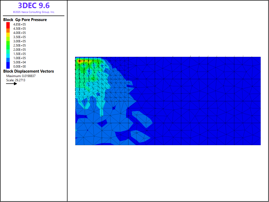 The principal results are summarized below Saturated Fluid Flow. Starting from a state of mechanical equilibrium, a coupled hydromechanical static simulation in 3DEC involves a series of steps. Each step includes one or more flow steps (flow loop) followed by enough mechanical steps (mechanical loop) to maintain quasi-static equilibrium, or an initialization with the block gridpoint initialize pore-pressure, block insitu pore-pressure, or block water table command.