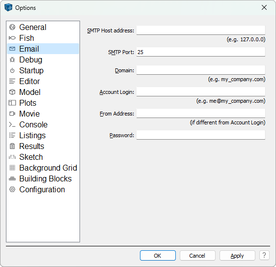 program mailcommand. A local declaration of this value (for instance, in a data file) will override a value specified here.Set the user account name in the SMTP settings for use with the