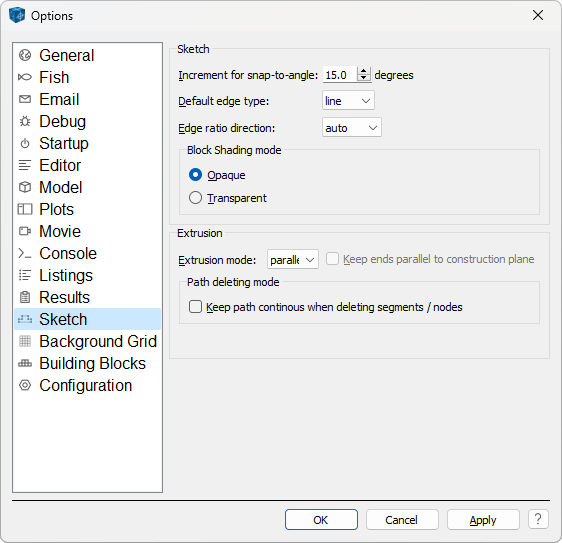 Increment for snap-to-angle:Set the angle increment to use to constrain the mouse position when holding the ctrl key and moving the mouse. The default setting is 15ยบ. It is recommended to turn off snapping to the background grid when using snap-to-angle.