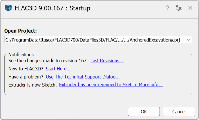 Closing or canceling the dialog causes the program to start without a project loaded.