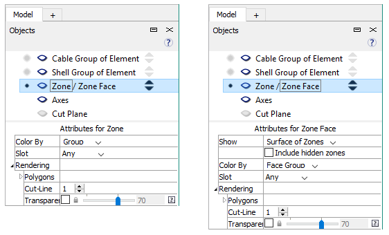 When zones and zone faces are available, only one of the two types of object can be viewed at a time.