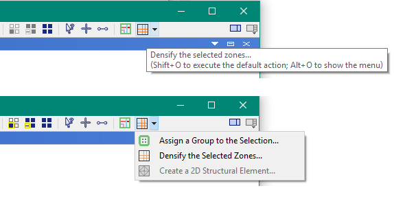 The operations menu holds a command for densifying selected zones. It is enabled only when one or more zones are selected.
