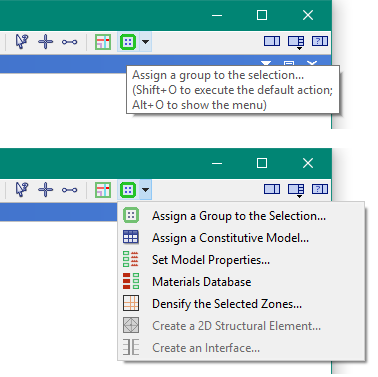 At the end of the list of tool buttons for the Model pane, there’s a tool button with a menu attached. The menu holds commands that can be used on the current selection. Commands are enabled or disabled based on the type of selection (zone/face/structural element).