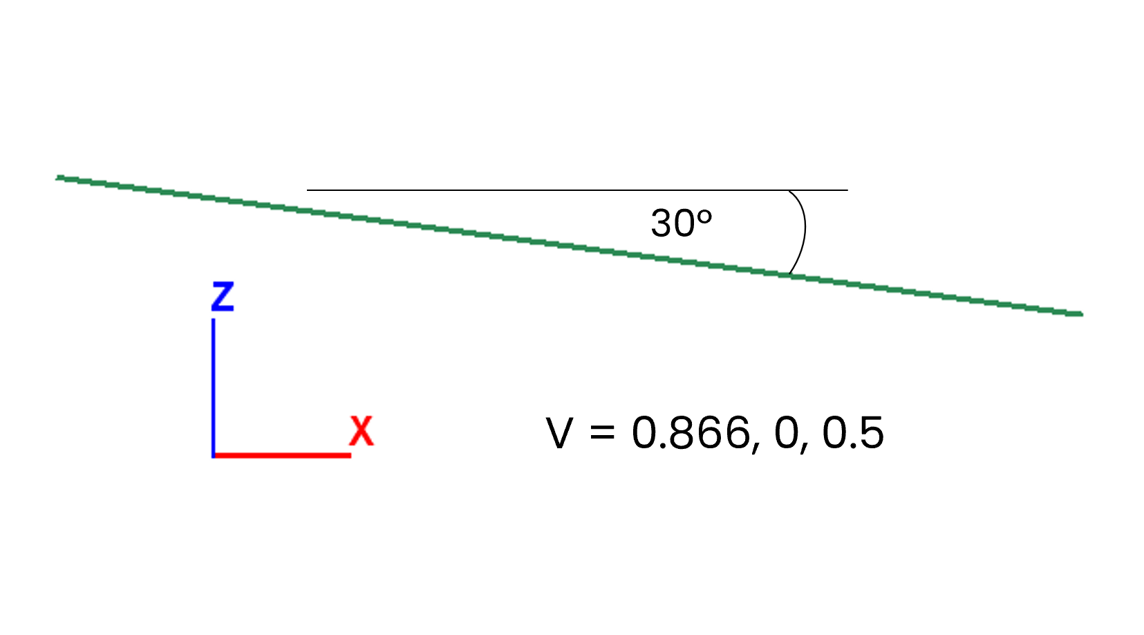 where \(\alpha\) is the dip and \(\beta\) is the dip-direction. A FISH function is provided to do this calculation (math.normal.from.dip.ddir). This function returns a unit vector in the direction of the normal.