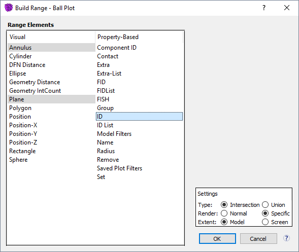 When is pressed in the dialog, the selected range element(s) are added to the range and listed beneath the “Range” item in the “Plot Items” list.