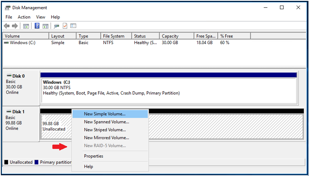Now, right-click on the right panel and select New Simple Volume… . Complete the wizard.