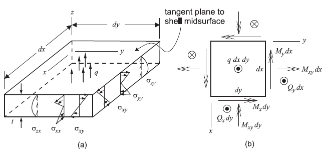 This section provides a brief introduction to shell behavior. Much of the information in this section is taken from Cook et al. (1989, 2002). Consult those texts for a more complete discussion. The brief introduction given here is expanded in Section 2.0 SHELL BEHAVIOR AND SHELL ELEMENTS of Potyondy (2022).
