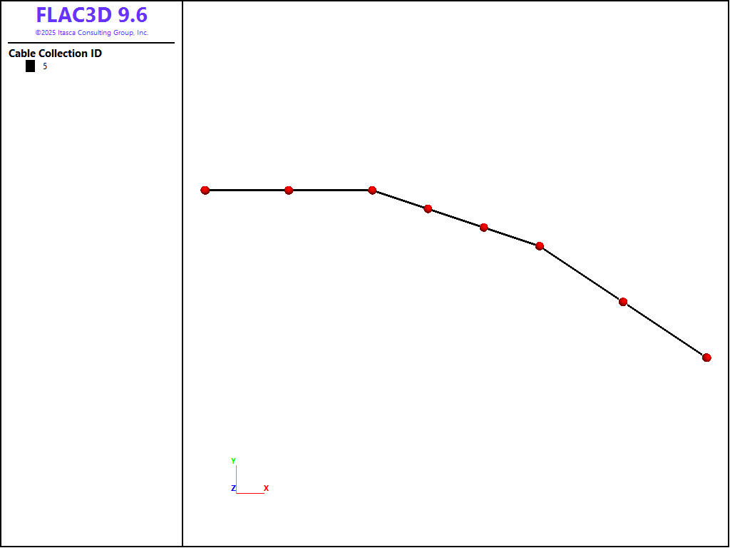 The geometry of cables, hybrid bolts, beams and piles is defined by their corresponding collection of component objects. The creation commands for all four of these types are identical, and for simplicity the following examples will be for cable elements, but they will work just as well for hybrid, pile or beam elements.