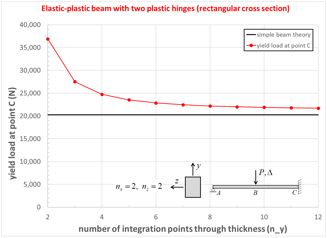Figure 18: Yield load convergence study for beam of rectangular cross section.