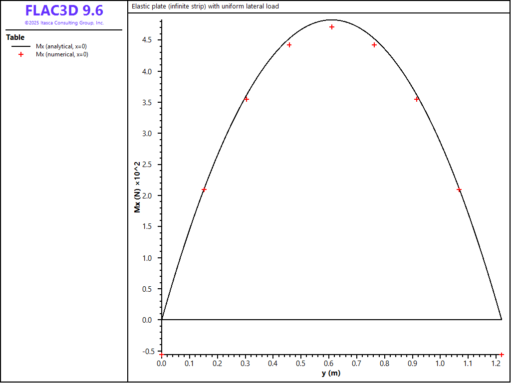 Figure 8: \(M_x\) stress resultant along the \(x = 0\) line.