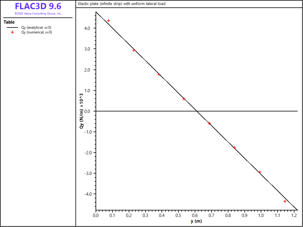 Figure 10: \(Q_y\) stress resultant along the \(x = 0\) line.