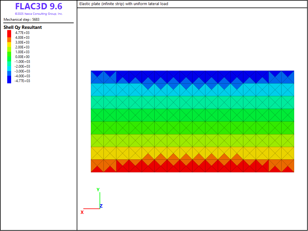 Figure 9: Variation of the \(Q_y\) stress resultant over the strip surface.