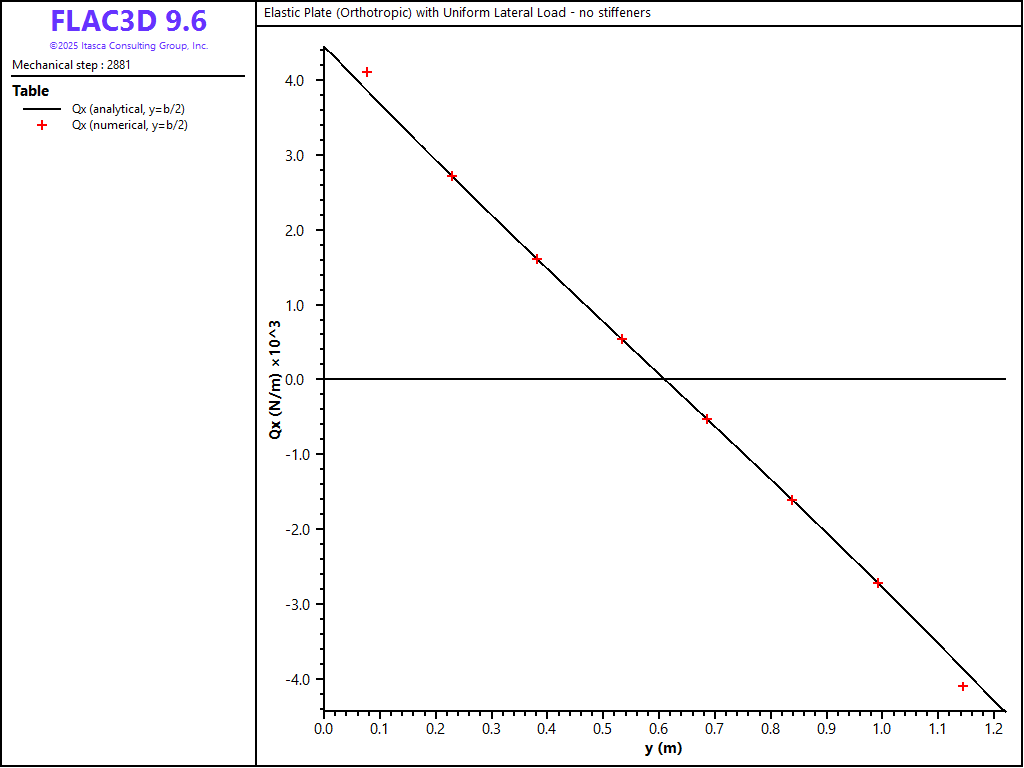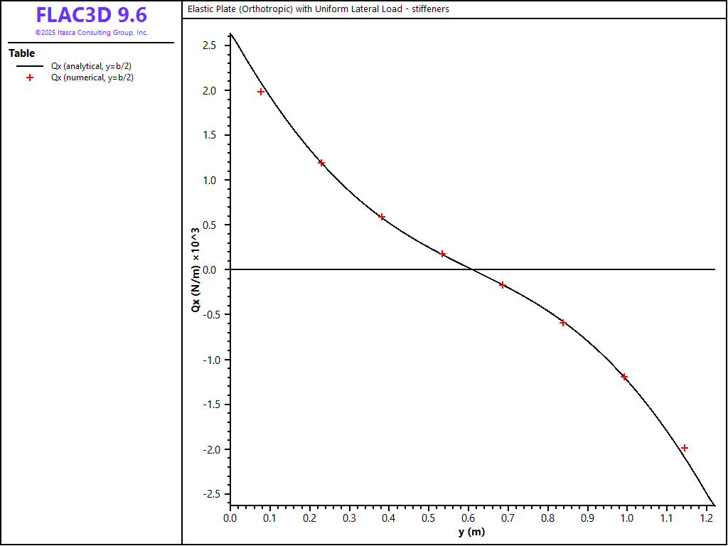 Figure 19: \(Q_x\) stress resultant along the \(y = b/2\) line (no stiffeners).