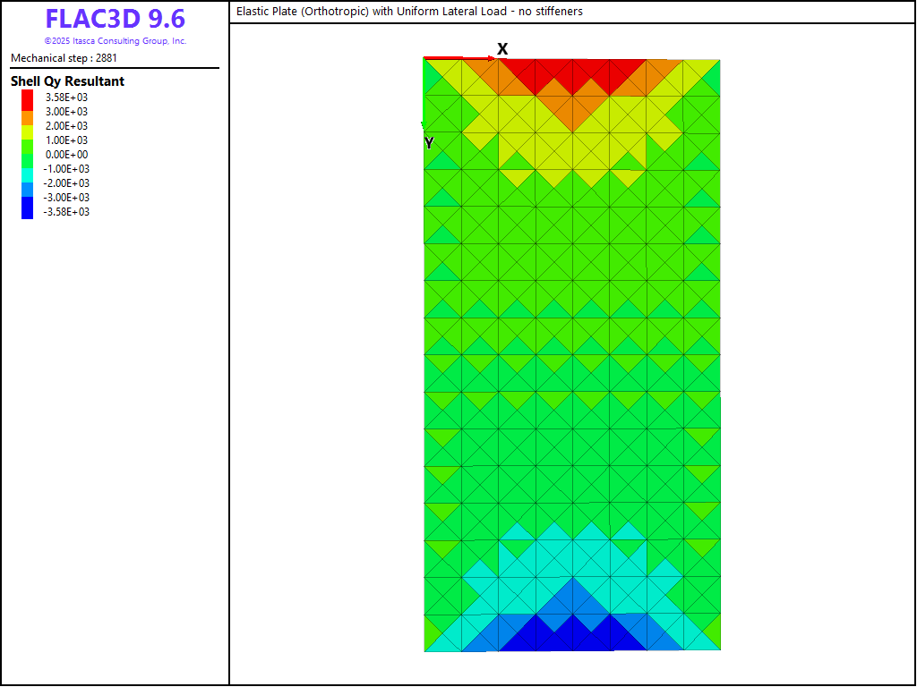 Figure 21: Variation of the \(Q_y\) stress resultant over the sheet surface (no stiffeners).