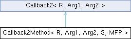 Inheritance diagram for Callback2Method< R, Arg1, Arg2, S, MFP >: