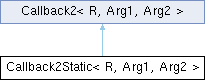 Inheritance diagram for Callback2Static< R, Arg1, Arg2 >:
