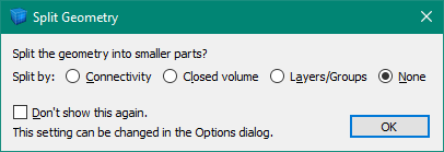 ) shows an Import dialog where you can choose a geometric data file to load. After you choose the file, you may, depending on a setting in the Options Dialog, CS: need preceding to be a link to a page that describes the bblocks options – but one of those needs to be written first! see a dialog asking whether to split the geometry into smaller parts. Splitting the geometry can be useful for larger geometric sets where it’s easier to work on just one part at a time.