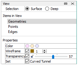 Once loaded, the name of the set appears in the View control set. The appearance of geometric data, such as its color and transparency, can be controlled in the View control set.