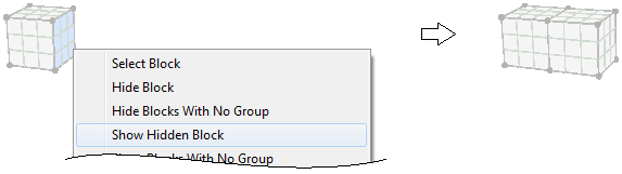 - The context menu has commands for showing by group. When you right-click a face that has a hidden block, the context menu will include one of two commands.