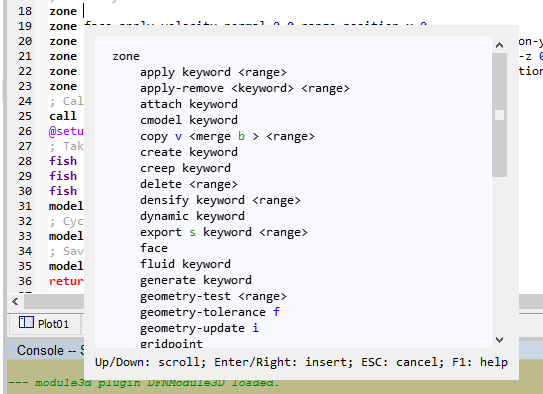 FLAC3D also features the addition of a new, much more powerful built-in editor. Features such as line numbers, code-folding, improved searching, and improved syntax highlighting are now available.