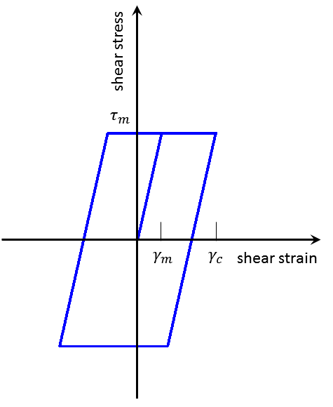 The elastic range is defined by \(\gamma_c < \gamma_m\), where the shear strain, \(\gamma_m\), is found from the following relation (see Equation (77)):