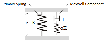 The basic building block of the Maxwell damping scheme is what is known as the Standard Linear Solid (SLS) as shown in Figure 4. This consists of a primary spring acting in parallel with a single Maxwell component – the Maxwell component itself being a spring in series with a viscous dashpot. Note that the stiffness of the Maxwell component spring is specified here as a fraction of the stiffness K of the primary spring.