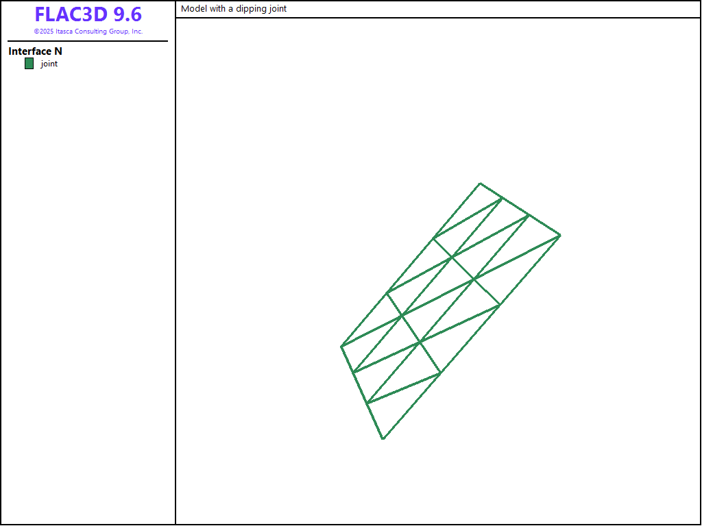 A simple example illustrating the procedure for interface creation is provided in “DippingJoint.dat”. To view this project, use the menu command . The example is a block specimen containing a single joint dipping at an angle of 45°.
